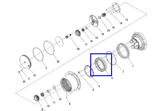 Przedmiotem tej aukcji jest łożysko główne zwolnicy, element zaznaczony na rysunku obok niebieską ramką, opisany numerem 4.