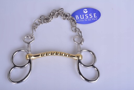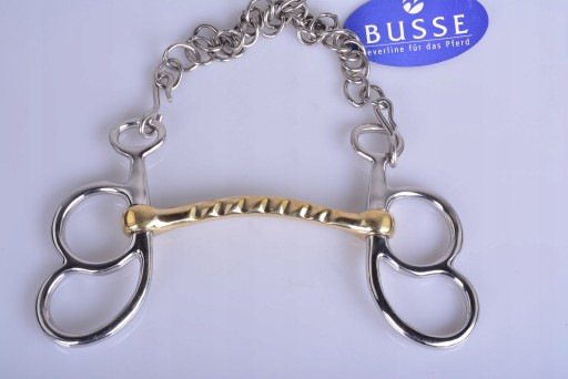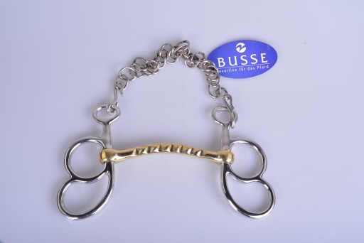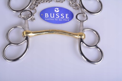 MUNSZTUK ZAPRZĘGOWY ŁAMANY 13,5CM. WYKONANY PRZEZ RENOMOWANO NIMIECKĄ FIRMĘ BUSSE. MUNSZTUK WYKONANE Z WYSOKIEJ JAKOŚCI STALI NIERDZEWNEJ.KÓŁKA UMOŻLIWIAJĄ ZAPIĘCIE LEJCA NA RÓŻNEJ WYSOKOŚCI. ŚCIĘGIERZ POWLEKANY MIEDZIĄ KTÓRA ZACHĘCA KONIA DO ŻUCIA I UŁATWIA AKCEPTACJE WĘDZIDŁA .POLECAM