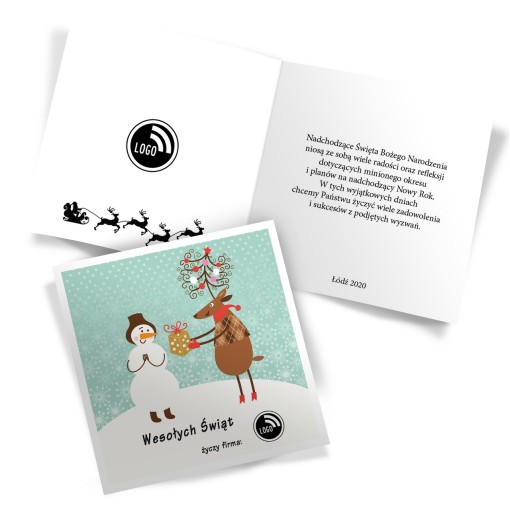 Życzenia do wnętrza kartki mogą być dowolne, rozmieszczenie tekstów również, logo Państwa firmy możemy umieścić może umieścić w dowolnym miejscu kartki, również we wnętrzu kartki świątecznej.