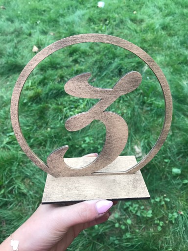 DUŻY DREWNIANY NUMER NA STÓŁ W RAMCE W KSZTAŁCIE KOŁA ZŁOTY