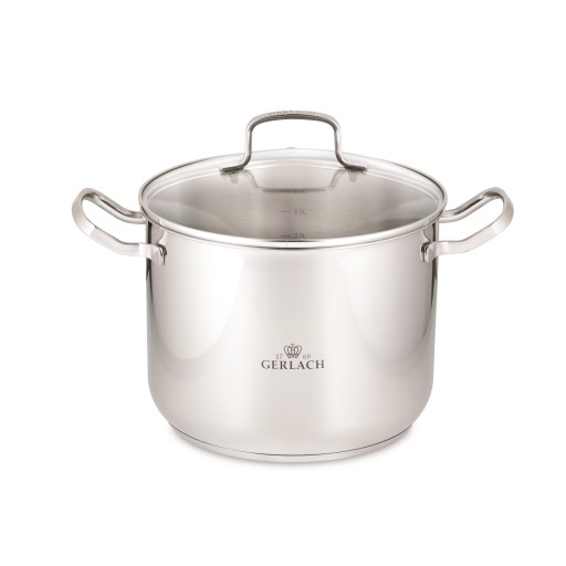 Duże i wygodne uchwyty stalowe ułatwiają dźwiganie i przenoszenie ciężkiego naczynia. Garnek posiada wewnętrzną miarkę, która ułatwia odmierzanie dodawanych składników.