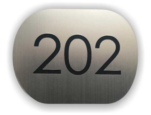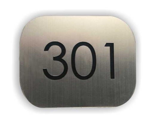 Numerek wykonujemy techniką grawerowania laserowego na wysokiej jakości laminacie grawerskim o grubości 1,6 mm