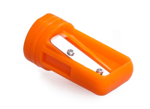 Temperówka do ostrzenia ołówków stolarskich. Korpus z tworzywa sztucznego, stalowe ostrze.