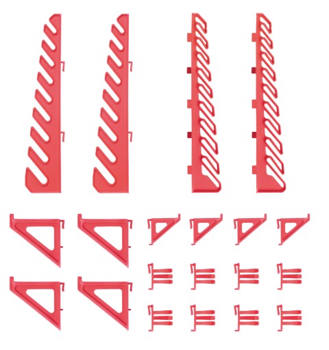 Łatwy montaż pojemników na tablicy pozwala na dowolne przemieszczanie ich w zależności od potrzeb. W każdej chwili można też pojemnik zdjąć, by uzyskać dostęp do zawartości. Dzięki uchwytom dołączonym do zestawu tablica szczególnie sprawdzi się w garażu czy warsztacie – wszystkie najpotrzebniejsze narzędzia będą zawsze pod ręką.