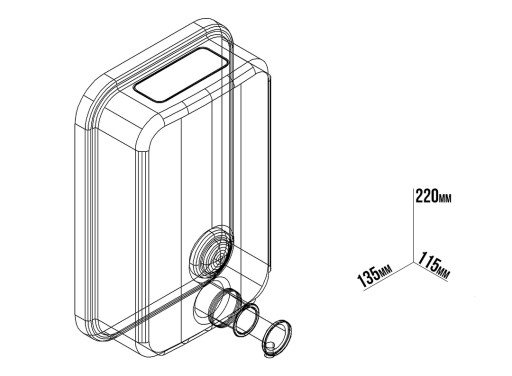 Wymiary: 220mm (wysokość), 135mm (szerokość), 115mm (głębokość)
