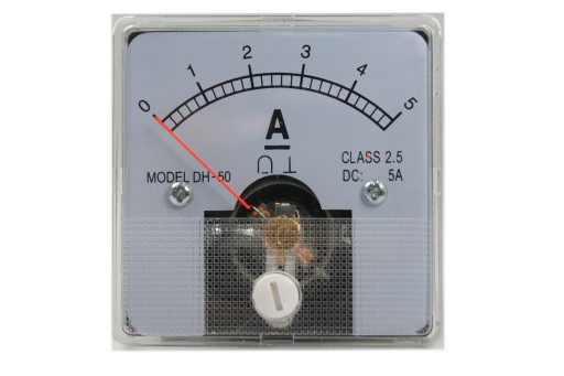 Miernik panelowy - amperomierz. Posiada wbudowany bocznik i śrubę służącą do regulacji zera(kalibracja).