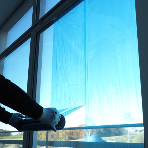 Służy do kompleksowego zabezpieczenia powierzchni szyb , dużych elementów elewacji, podczas w/w prac trwale i w sposób skuteczny zabezpiecza przed uszkodzeniami mechanicznymi i zabrudzeniem materiałami chemicznymi ; farby , tynki, lakiery , pianki poliuretanowe , klej i silikony i inne