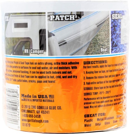 Wodoodporna taśma klejąco-uszczelniająca Gorilla Biała natychmiast uszczelnia i zabezpiecza przed wodą, powietrzem i wilgocią. Dzięki wyjątkowo grubej warstwie kleju i podkładowi odpornemu na promieniowanie UV taśma dopasowuje się, tworząc trwałe połączenie wewnątrz i na zewnątrz. Przy szerokości 10,16 cm używaj jej do łatania dziur, pęknięć, szczelin i wyżłobień, nawet pod wodą.