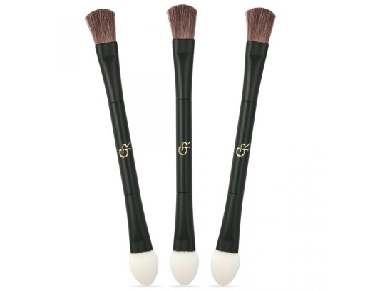 Dwustronny pędzel do nakładania cieni posiada podwójne zastosowanie.
