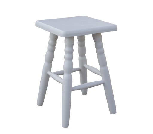 TABORET KUCHENNY DREWNIANY NA TOCZONYCH NOGACH W KOLORZE BIAŁYM.