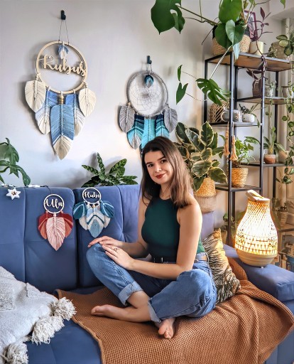Specjalizuję się w makramach z piór od lat. Dzięki nabytemu doświadczeniu i ciągłemu udoskonalaniu technik, moje makramy są jednymi z najlepszych jakościowo w Europie - idealnie trwałe, dopracowane w każdym szczególe i perfekcyjnie zabezpieczone w podróży. Są inwestycją w piękne wnętrze na lata.