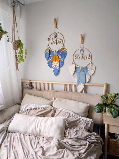 Piękna dekoracja w stylu boho, sprawi że Twoje wnętrze stanie się przytulne i wyjątkowe. Każdy produkt w mojej ofercie może być spersonalizowany, wykonuję go specjalnie dla Ciebie. Czas realizacji łapaczy z personalizowaną obręczą trwa 2-4 tygodnie.