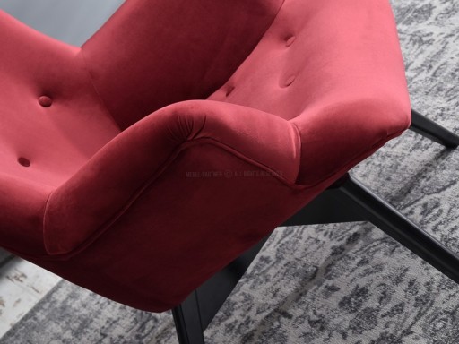 Oryginalny uszak z niesamowicie wygodnym siedziskiem i podłokietnikami podwyższającymi komfort użytkowania. Niepowtarzalny, bordowy odcień wpisze się w każde nowoczesne wnętrze i nada mu charakterystycznego punktu, zaś czarna, drewniana podstawa to zapewnienie stabilności!