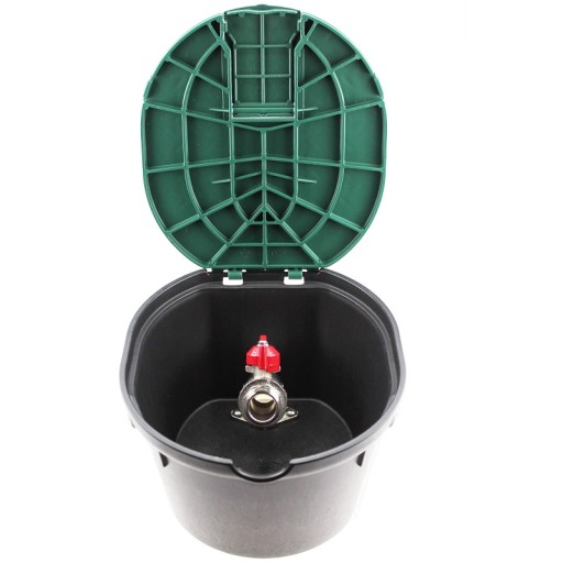 Kiedy puszka nie jest w użyciu zamykana pokrywa chroni ją przed zanieczyszczeniami. Dodatkowe wycięcie w klapie pozwala również na jednoczesne podlewanie przy zamkniętej pokrywie. Produkt wykonany z wysokiej jakości Polipropyleniu jest odporny na promieniowanie UV oraz na większość uszkodzeń mechanicznych. Wewnątrz puszki znajduje się metalowy zawór kulowy wyposażony w przyłącze GZ 3/4".