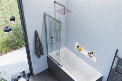 Parawan wannowy rozsuwany LINER to kompromis dla tych, którzy mimo małej przestrzeni w łazience chcą posiadać jednocześnie wannę i kabinę.