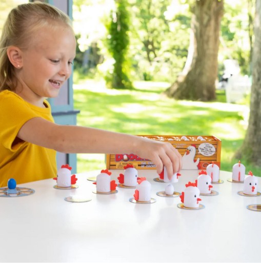Zostań małym farmerem i zarządzaj kurnikiem. Zbierz 12 jaj schowanych w 15 kurzych gniazdach, a potem ponownie je ukryj, nim Twoje jajko całkowicie popęka! Gra Kurnik, Peek-A-Doodle Doo od Fat Brain Toy co. to nowe, świeże podejście do tradycyjnej gry memory, która rozwija pamięć i koncentrację dziecka.