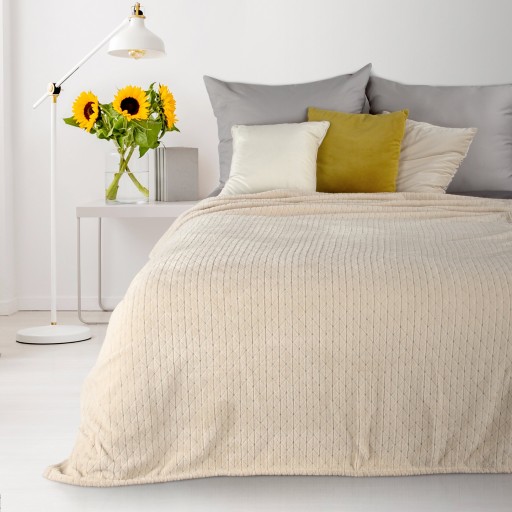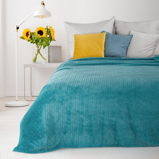 Nowocześnie wykonany koc, narzuta z wytłaczanej mikrofibry.