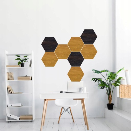 Jeżeli Twoja ściana jest jeszcze pusta - mamy idealne rozwiązanie! Ożyw swoje wnętrze modnym dodatkiem. Wiele pokoi ma drewniane akcenty, więc w prosty sposób dopasujesz heksagony na swojej ścianie lub suficie. Układaj i dobieraj kolory jak tylko chcesz.