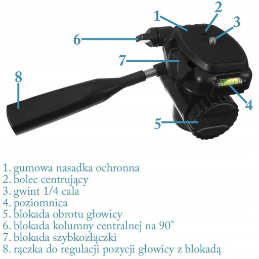 - Ruchoma głowica z uniwersalnym gwintem 1/4''