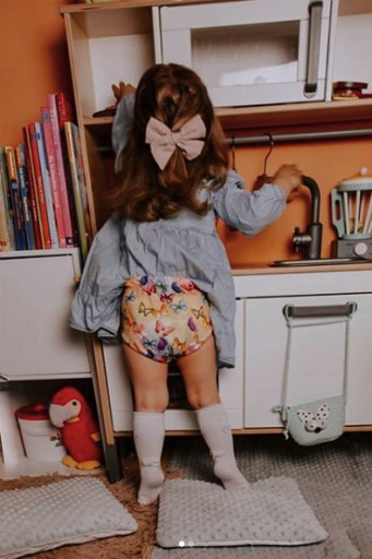 - wykonane z nieprzemakalnej tkaniny PUL na zewnątrz i miękkiego coolmaxuw środku, który pozwala dziecku odczuwać wilgoć