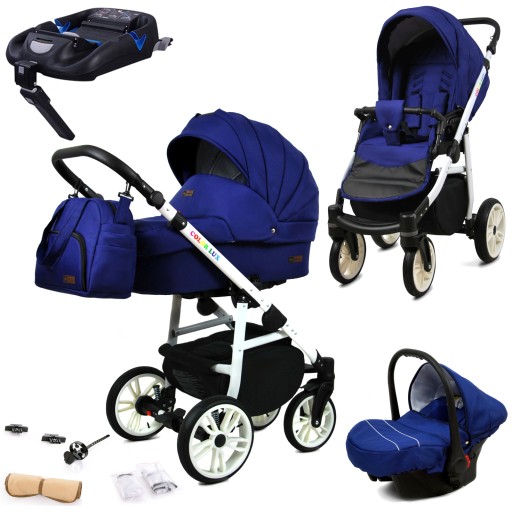 Color Lux 4w1 to wielofunkcyjny wózek z najnowszej kolekcji znanej, europejskiej marki BabyLux. Może być używany jako wózek głęboki, spacerowy oraz fotelik samochodowy z możliwością montażu na ramie wózka, a do tego posiada jeszcze bazę samochodową ISOFIX. Wykonany z najwyższej jakości tkanin typu Exclusive posiadających certyfikat OEKO-TEX STANDARD 100 w kolorze Sailor Blue, który nie tylko prezentuje się niezwykle elegancko, ale jest także bardzo odporny na blaknięcie oraz wilgoć. Ekskluzywne tkaniny zapewniają także podróżującemu dziecku idealną temperaturę oraz wilgotność powietrza niezależnie od panujących warunków atmosferycznych. Dla maksymalnej funkcjonalności oraz komfortu użytkowania wiele elementów wózka takich jak prowadnica, rączka do przenoszenia gondoli, barierka oraz podnóżek spacerówki zostało wykonane z wytrzymałej ekoskóry. Dzięki czemu produkt posłuży przez długi okres czasu.