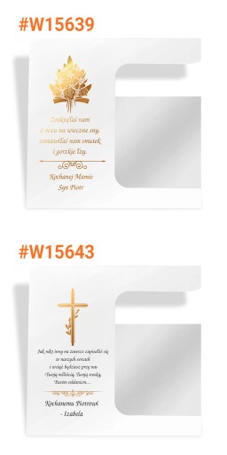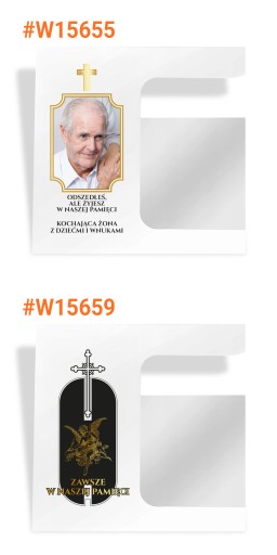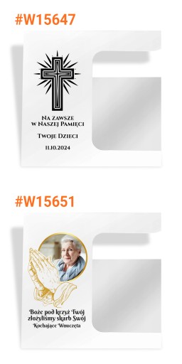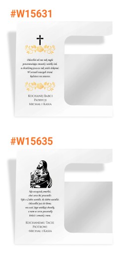Podstawka na grób wykonana została z grubej (3 mm) pleksi, po lewej stronie zamieścimy wybraną przez Ciebie dedykację. Do każdej podstawki dołączamy lampion, maksymalna wysokość wkładu który zmieści się w lampionie to 16 cm.