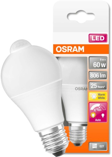 Żarówka LED E27 9W 60W 2700K Czujnik ruchu OSRAM