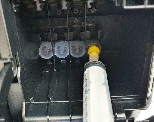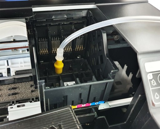 Do głowic Epson - Nie wymaga demontażu głowicy (proszę pamiętać o ręczniku papierowym pod spód głowicy aby aplikowany płyn nie zalał urządzenia)