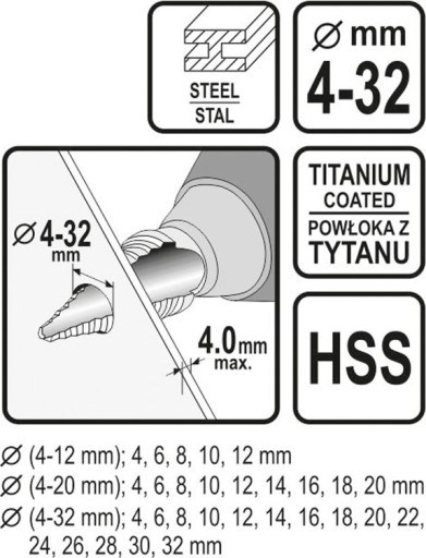 СТУПЕНЧАТЫЕ КОНИЧЕСКИЕ СВЕРЛА ПО МЕТАЛЛУ 4-32мм 3 ШТ.