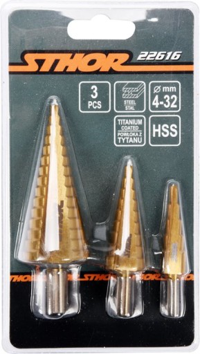 ZESTAW WIERTEŁ STOPNIOWYCH 3SZT.