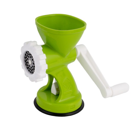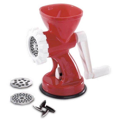 Bardzo praktyczna ręczna maszynka do mięsa wykonana z mocnego tworzywa sztucznego. Przymocowywana do blatu za pomocą przyssawki, zasilana ręcznie. Ostrza wykonane są z wysokiej jakości stali. W zestawie znajdziemy 2 różne końcówki, dzięki czemu będziemy mogli mielić warzywa i owoce.