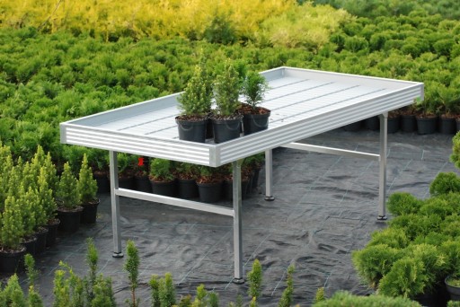 Stoły mają używane aluminiowe ramy w bardzo dobrej kondycji, nie zniszczone oraz NOWE PODŁOGI wykonane z czarnego tworzywa odpornego na UV.