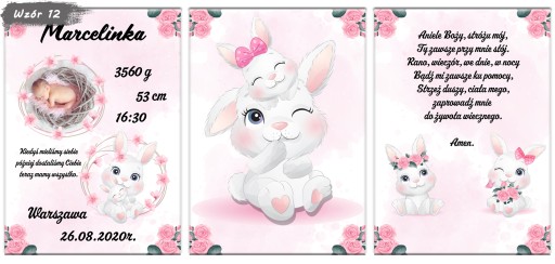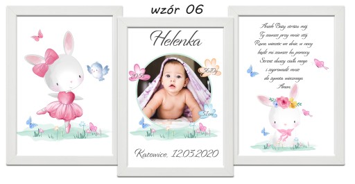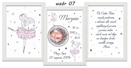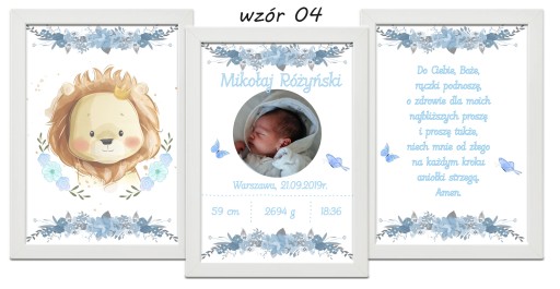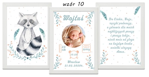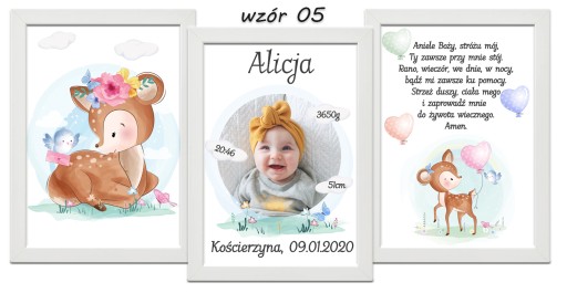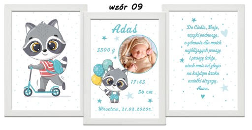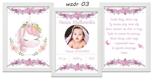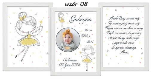 Zestaw 3 plakatów do pokoju Twojego maluszka. Metryczka ze zdjęciem, obrazek i modlitwa w formacie A4 w ramce do wyboru.