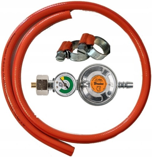 КОМПЛЕКТ ДЛЯ ЦИЛИНДРА 11 КГ, РЕДУКТОР, МАНОМЕТР + ШЛАНГ + ЗАЖИМЫ