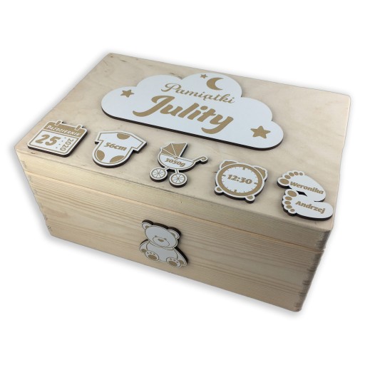 Kuferek Wspomnień z metryczką dziecka Prezent na Roczek Chrzest