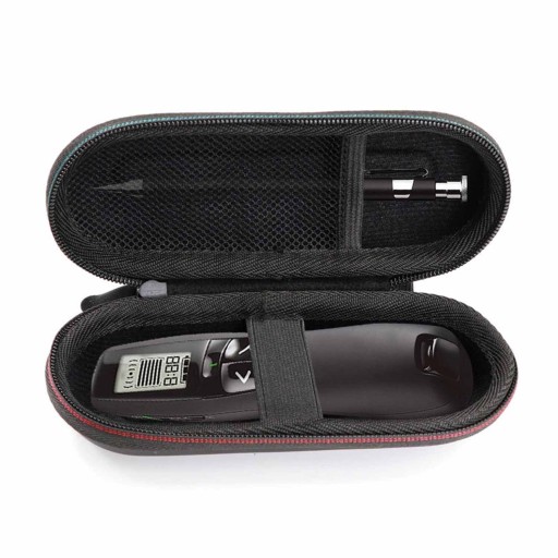 ◉ Wyprofilowane wnętrze etui zapobiega przemieszczaniu prezentera podczas transportu