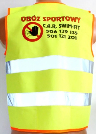 Na kamizelce można umieścić dowolną grafikę w kolorze - logo, herb, napis, zdjęcie itp.