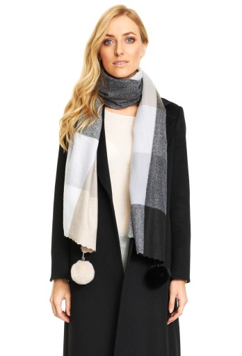 ШАРФ ЖЕНСКИЙ, ПЛОТНЫЙ, ТЕПЛЫЙ, с большими помпонами.