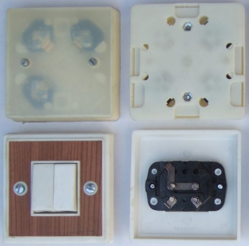 Produkt nieużywany, na życzenie mogę mieć większą ilość tych samych wyłączników, podstaw - puszek itp.