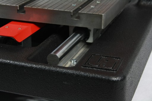 Maszyna posiada monolityczny żeliwny stół teowy do wygodnego i pewnego mocowania elementów.