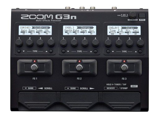 Nowy multiefekt gitarowy firmy ZOOM G3n – pozwala tworzyć łańcuchy efektowe złożone z maksymalnie 7 bloków i oferuje 150 komórek pamięci na programy Patch, z których połowa jest zajęta przez fabryczne presety.
