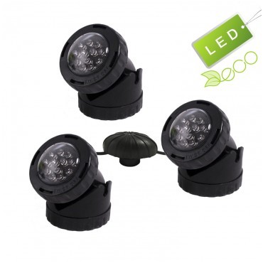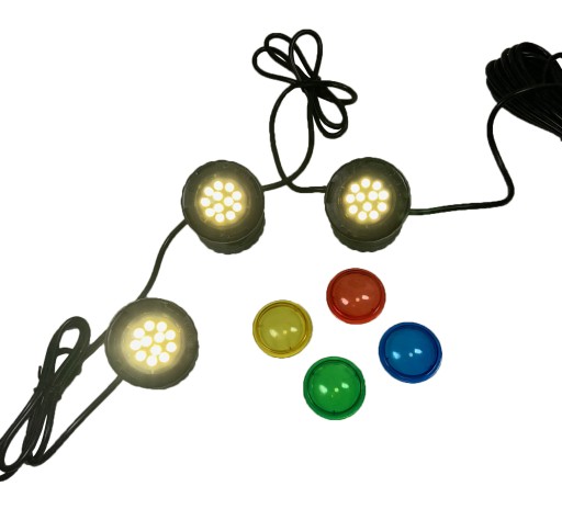 Moc zestawu to 3x1,6W. Lampy mogą być używany zawórno w wodzie, w pełnym zanurzeniu jak i na powierzchni do oświetlania altanek, alejek itp.