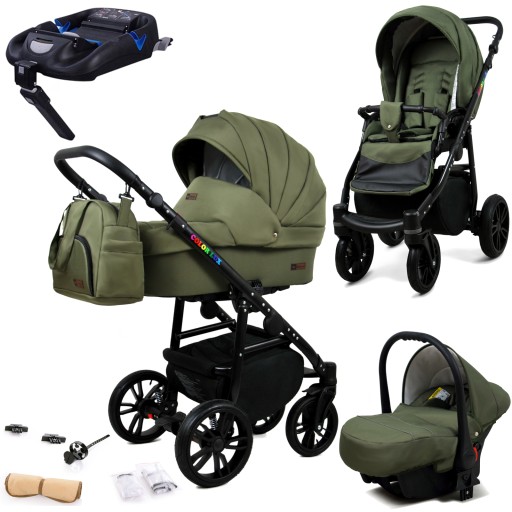 Wózek dziecięcy 4w1 BabyLux Color Lux ALU - głęboki, spacerowy, fotelik samochodowy + baza ISOFIX
