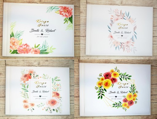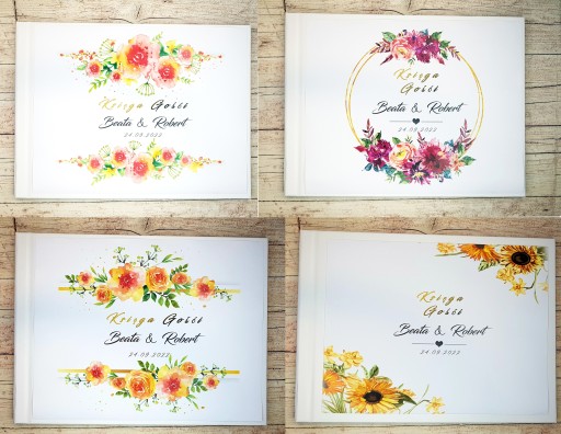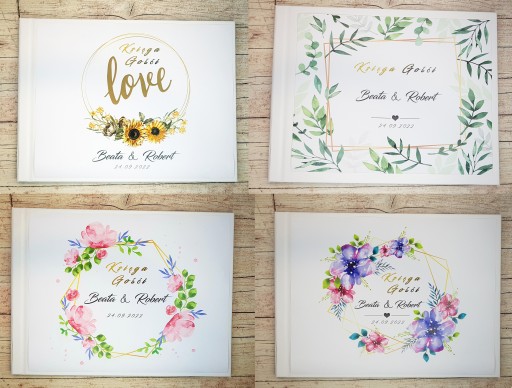 - Grafika jest drukowana cyfrowo i naklejana na księgę gości.