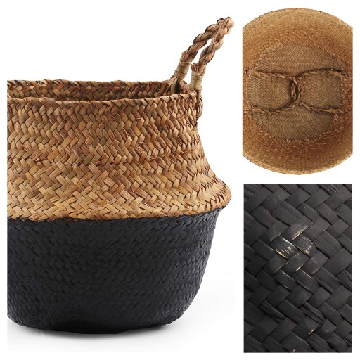 КОРЗИНА ДЛЯ КОРЗИНЫ С МОРСКОЙ ТРАВОЙ С РУЧКАМИ, БОЛЬШОЙ ЧЕРНЫЙ КОНТЕЙНЕР 35x31 СМ