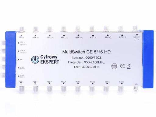 MutliSwitch CE 5/16 HD to nowoczesny system podziału sygnału marki Cyfrowy Ekspert. System ten umożliwia, w prosty i szybki sposób, rozdzielenie sygnału satelitarnego z 1 pozycji SAT (4 polaryzacje) na 16 niezależnych użytkowników.