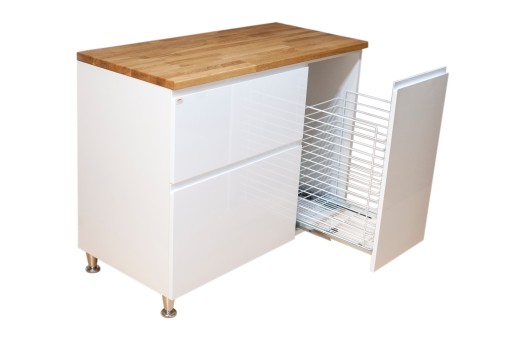 Możliwość umiejscowienia części z koszem po lewej stronie szafki.