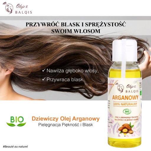 Skład : 100% czysty, nierafinowany olej kosmetyczny Bio naturalny (Argania Spinoza Kernel oil), tłoczony na zimno.