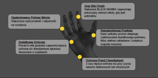 Rękawice Black Mamba zostały zaprojektowane i wyprodukowane do zastosowań przemysłowych, w których standardowe rękawice jednorazowe nie są w stanie zapewnić odporności i wydajności wymaganej przy najtrudniejszych pracach.