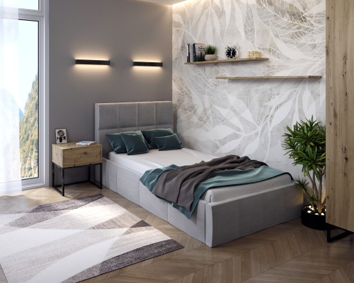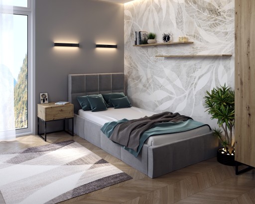 Mebel stworzony został z dbałością o każdy szczegół i starannie wykończone. Pojemnik na pościel wykonany jest na solidnej ramie metalowej, która dostosowana jest do podnoszenia nawet najcięższych materacy, dzięki czemu możemy wykorzystać przestrzeń pod materacem jako dodatkowy schowek na zapasową kołdrę czy poduszki. Podnośniki zastosowane w pojemniku na pościel są gazowe, co sprawia że pojemnik podnosi się łatwo, aczkolwiek powoli - jest to bardzo ważne ze względów bezpieczeństwa. Elementem nadającym niepowtarzalny styl jest tapicerowany zagłówek, który pełni nie tylko funkcję dekoracyjną, ale również stanowi wygodne podparcie podczas czytania ulubionej książki lub oglądania telewizji.